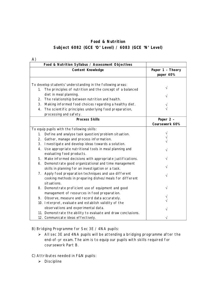 [URGENT] Food & Nutrition O level coursework Home> Homework Forum [URGENT] Food & Nutrition O level coursework gotenz 12 Feb 14, 21:37 I am a sec 4 this year doing coursework and i don get what is priorities list..